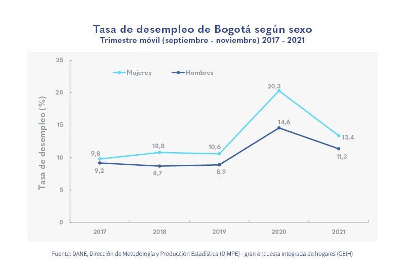 Más de 162.000 mujeres bogotanas salieron del desempleo en septiembre – noviembre de 2021.