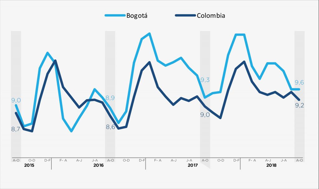 Published in: Boletines Desempleo se ubicó en 9,6% para el trimestre agosto – octubre en Bogotá Author Admin Observatorio Published on: 30 de noviembre de 2018 Destacados: Nuevos empleos el trimestre móvil agosto-octubre de 2018, laIntermediación financiera generando 42.686 Servicios comunales, sociales y personales, 25.798Sector construcción que generó 9.982 Archivo de descarga: Boletín mercado laboral No.100 Temas: Mercado laboralMercado laboral general. Tipo de Publicación: Boletines
