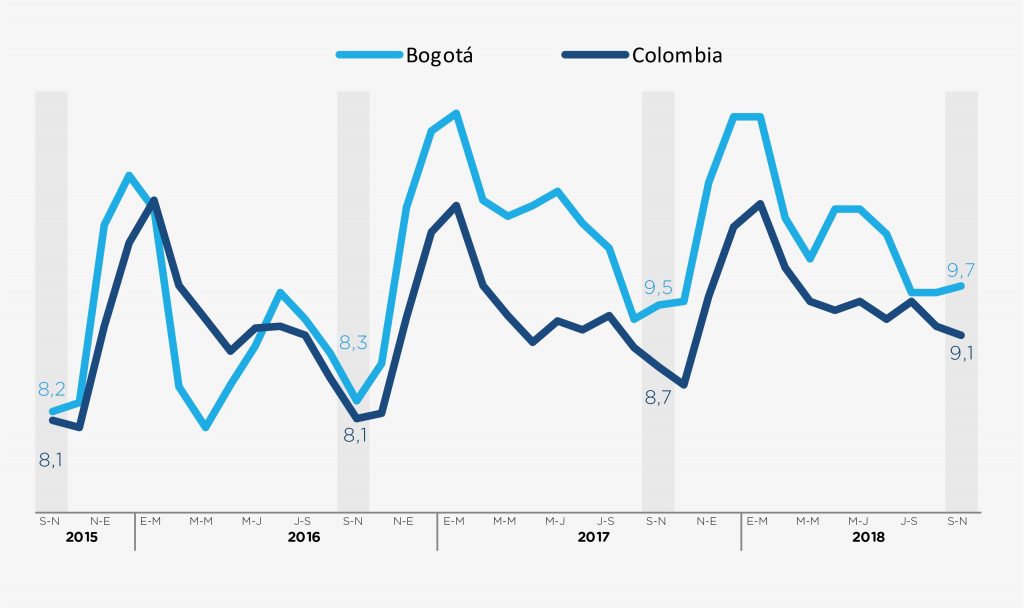 La tasa de desempleo en Bogotá se ubicó en 9,7% para el trimestre septiembre-noviembre