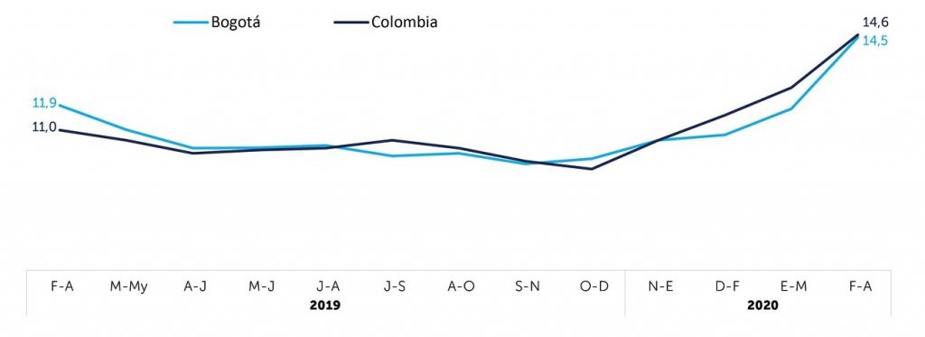 Published in: Boletines Aumenta el desempleo en Bogotá Author Juan Rico Rengifo Published on: 3 de junio de 2020 Destacados: El panorama nacional no es muy alentador, la tasa de desempleo llegó a 14,6% Archivo de descarga: Boletín mercado laboral No.118 Temas: Mercado laboral general. Mercado laboral Tipo de Publicación: Boletines