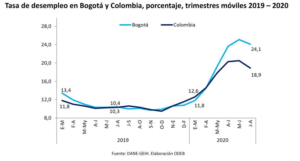 Published in: Boletines Leve recuperación en la tasa de desempleo Author Juan Rico Rengifo Published on: 5 de octubre de 2020 Destacados: El número de inactivos para el trimestre móvil junio – agosto, aumentó en 19,2%, es decir 408.951 personas pasaron a no realizar ningún tipo de actividad, respecto al mismo trimestre de 2019. Archivo de descarga: Boletín mercado laboral No.122 Temas: Mercado laboral general. Tipo de Publicación: Boletines