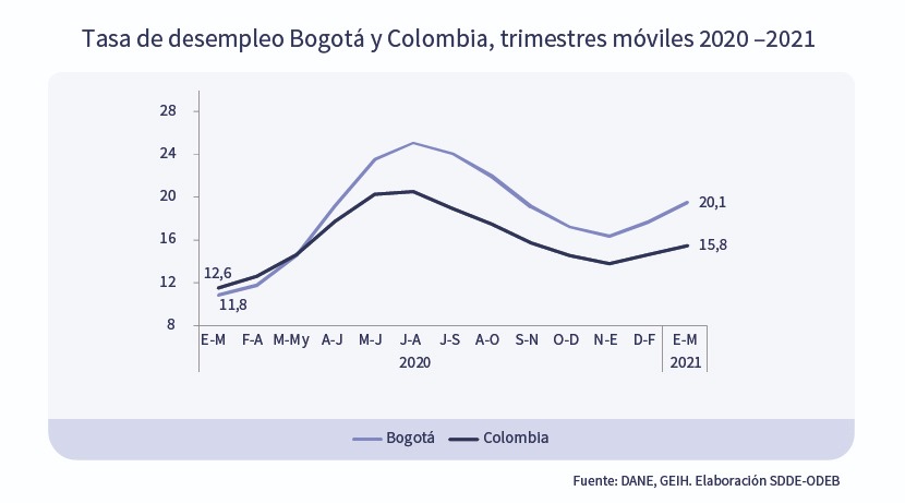 La categoría, trabajador por cuenta propia ocupó a 30.389 capitalinos frente al mismo periodo de 2020.