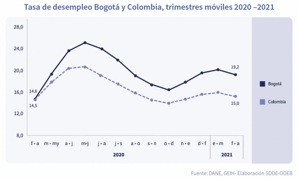Disminuyó la tasa de desempleo en Colombia para trimestre móvil febrero – abril de 2021 en 2,7 p.p.