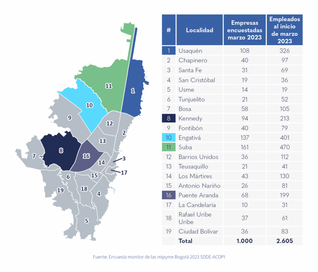 • El 31,5 % de las mipyme encuestadas, reportaron ventas diarias inferiores a $500.000.