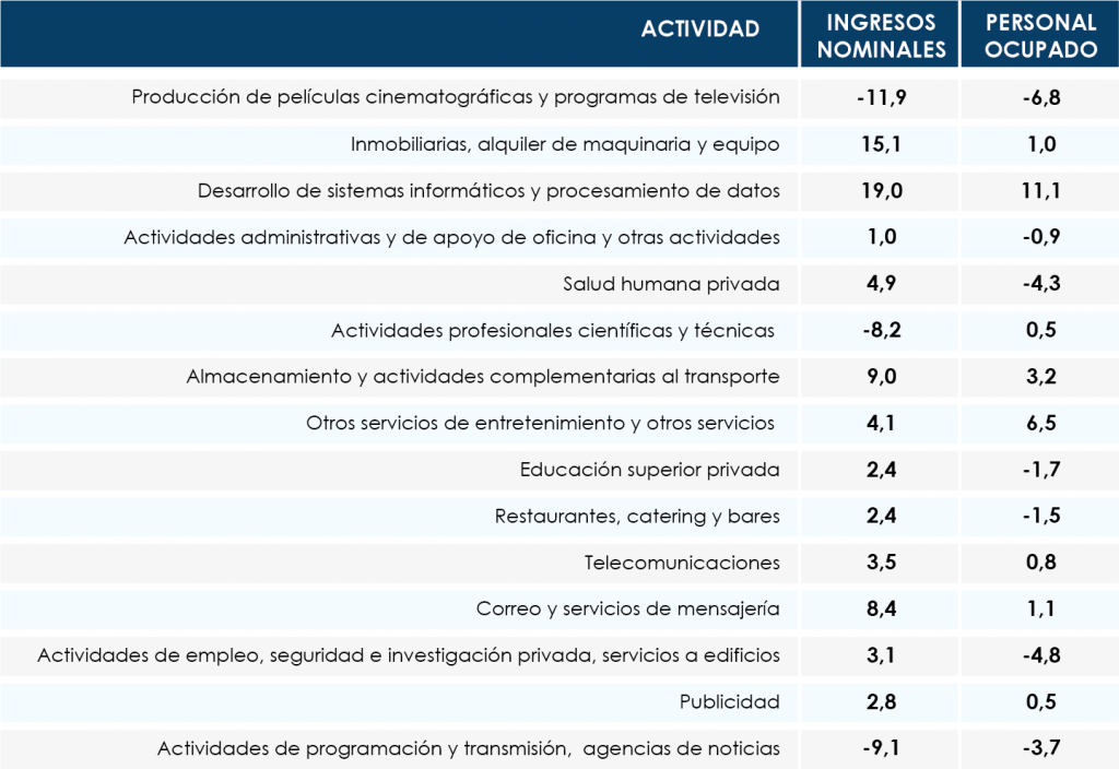 Published in: Boletines El desarrollo de sistemas informáticos aumentó sus ingresos 19% Author Observatorio Economico Published on: 13 de septiembre de 2019 Destacados: Se presentó crecimiento en la demanda de sistemas informáticos y procesamiento de datos, a cargo de empresas del sector financiero para el desarrollo de core bancario. Archivo de descarga: Boletín servicios No. 22 Temas: Servicios Tipo de Publicación: Boletines