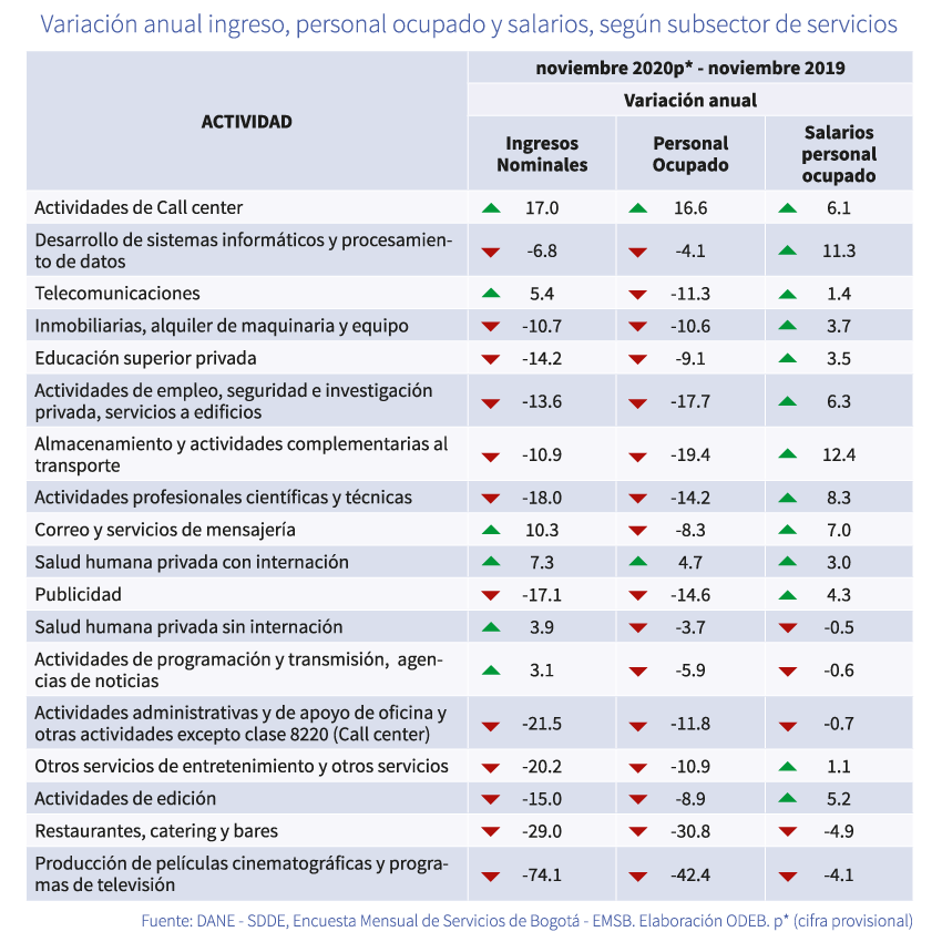 Seis actividades de servicios en Bogotá aumentaron sus ingresos en noviembre de 2020