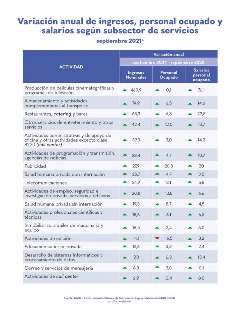 • Publicidad continúa siendo el sector con mayor tasa de crecimiento del personal ocupado, alcanzando 20,8 % en septiembre de 2021, con respecto al mismo mes de 2020.