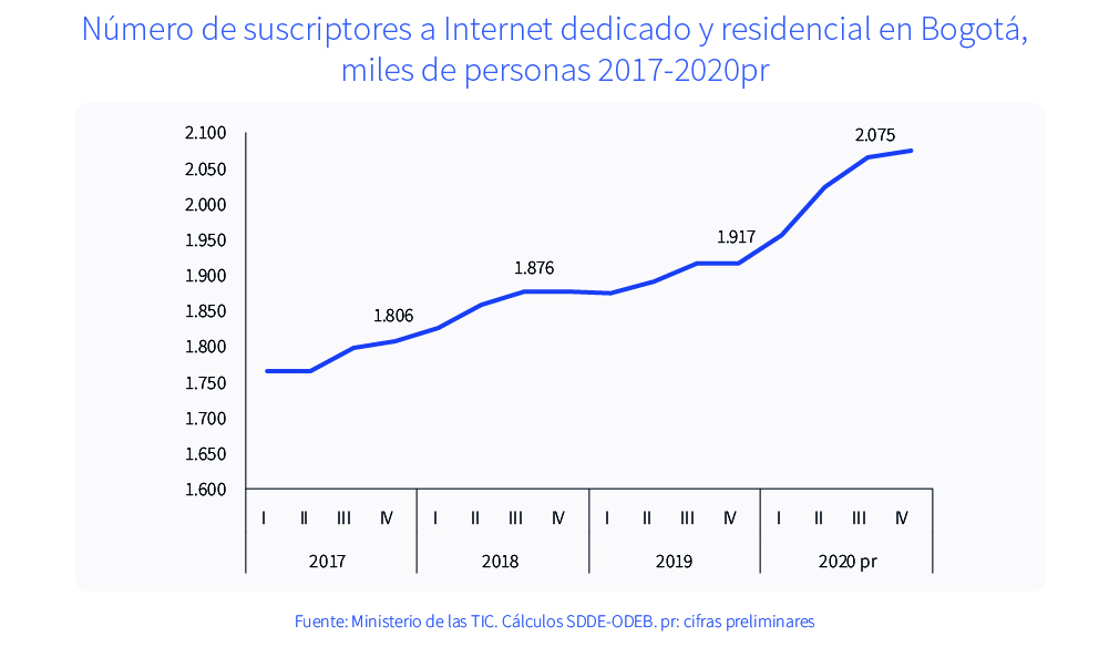 La capital continúa liderando la tasa de penetración del servicio de Internet más alta en el país, que para el cuarto trimestre de 2020 se ubicó en 26,8 %.