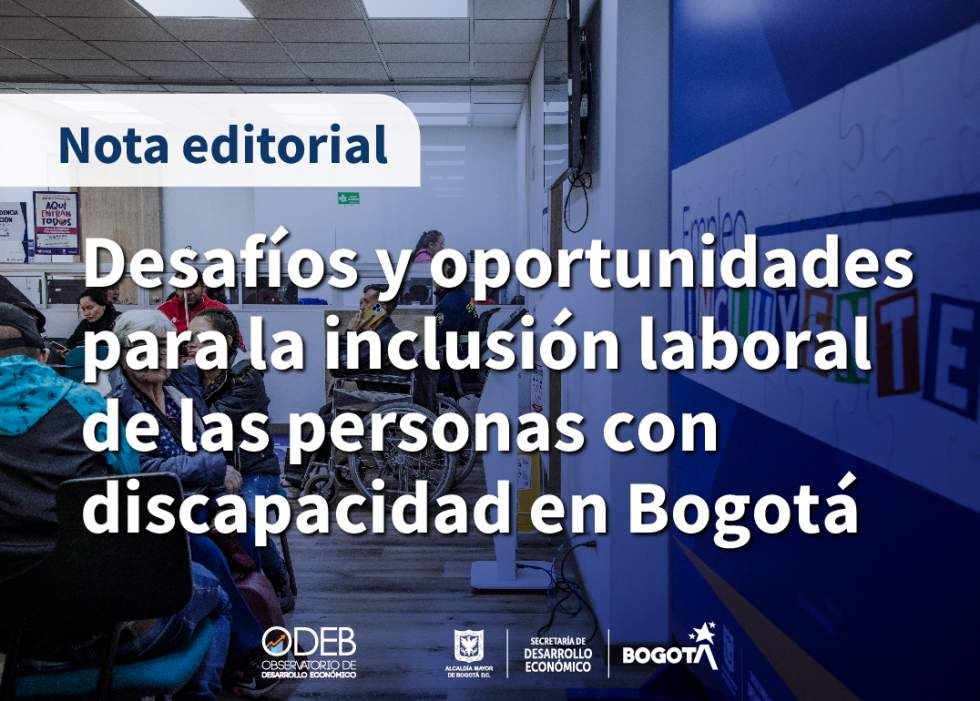 Published in: Notas Editoriales Desafíos y oportunidades para la inclusión laboral de las personas con discapacidad en Bogotá Author Observatorio Economico Published on: 3 de diciembre de 2024 Archivo de descarga: Nota editorial: Desafíos y oportunidades para la inclusión laboral de las personas con discapacidad en Bogotá Temas:Mercado laboral generalDinámica empresarial Tipo de Publicación: Nota Editorial