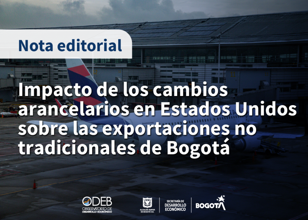 Published in: Notas Editoriales Impacto de los cambios arancelarios en Estados Unidos sobre las exportaciones no tradicionales de Bogotá Author Observatorio Economico Published on: 9 de abril de 2025 Archivo de descarga: Nota editorial:Impacto de los cambios arancelarios en Estados Unidos sobre las exportaciones no tradicionales de Bogotá Temas: Exportaciones Dinámica empresarial Tipo de Publicación: Nota Editorial